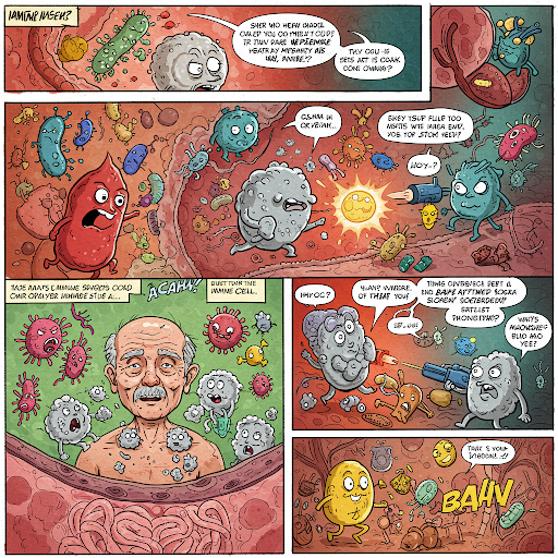 - 나이가 들면서 백혈구(면역 세포)의 생성이 줄어들어 감염에 취약해짐