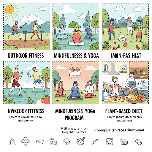 | 스트레스 관리 및 심신 안정 | 명상, 요가, 상담, 아로마 테라피 | 스트레스 감소, 심리적 안정, 수면 질 향상 | 개인 노력 필요, 효과 개인차 | 스트레스 많음, 심리적 불안, 수면 장애 |