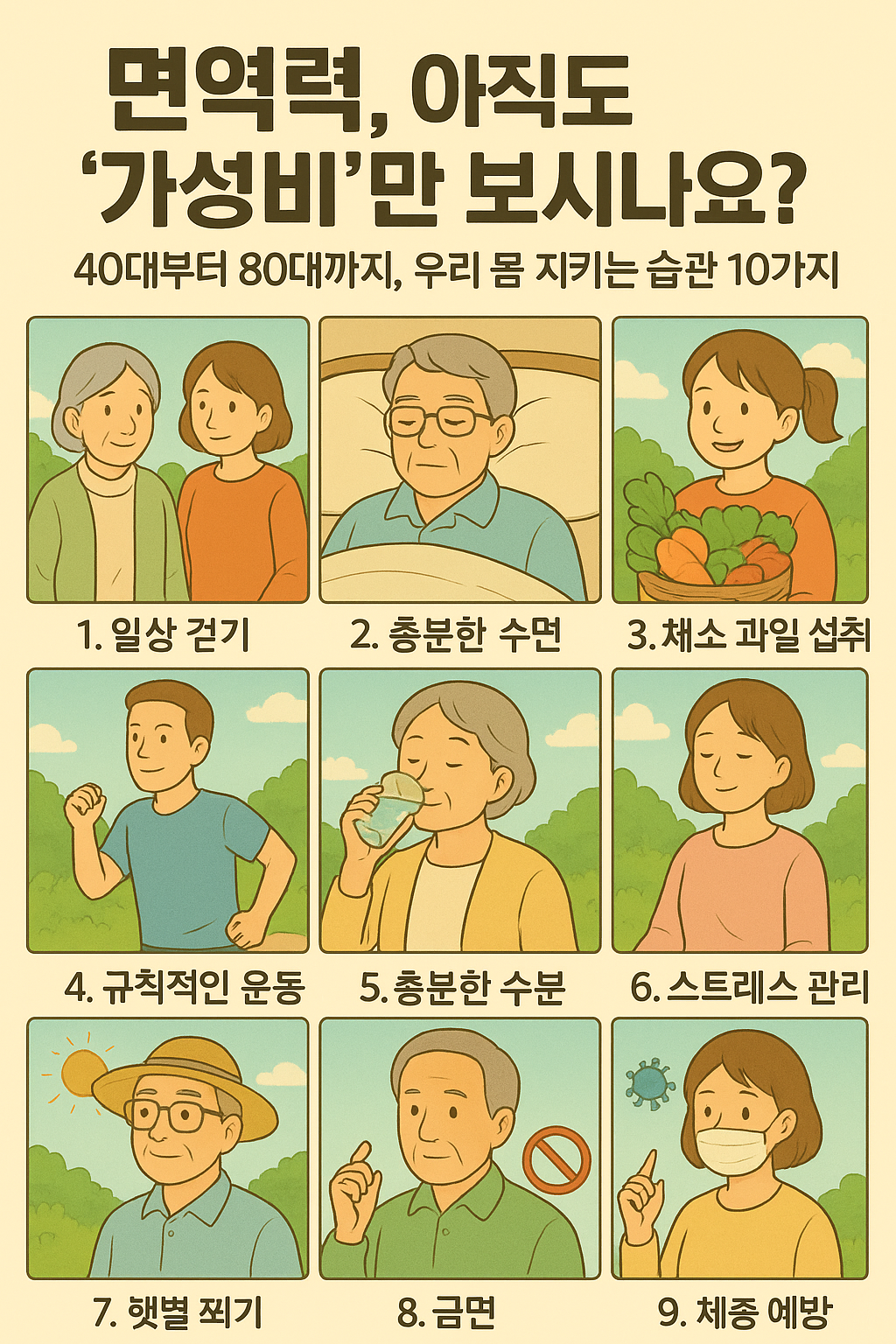 면역력은 단순히 건강기능식품 몇 개로 해결되는 문제가 아닙니다. 건강한 식습관, 충분한 수면, 규칙적인 운동, 그리고 스트레스 관리까지 포함하는 총체적인 '면역 생활'이 필요합니다. 이 글이 여러분의 건강한 미래를 위한 작은 길잡이가 되었기를 바랍니다. 감사합니다.