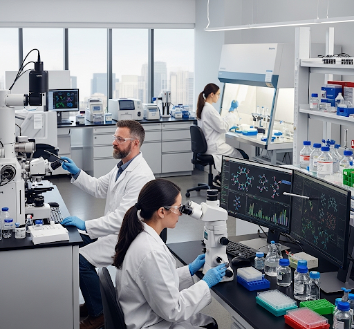 면역력을 연구하는 과학자들의 모습입니다. 면역력 관리가 과학적인 영역임을 보여줍니다.