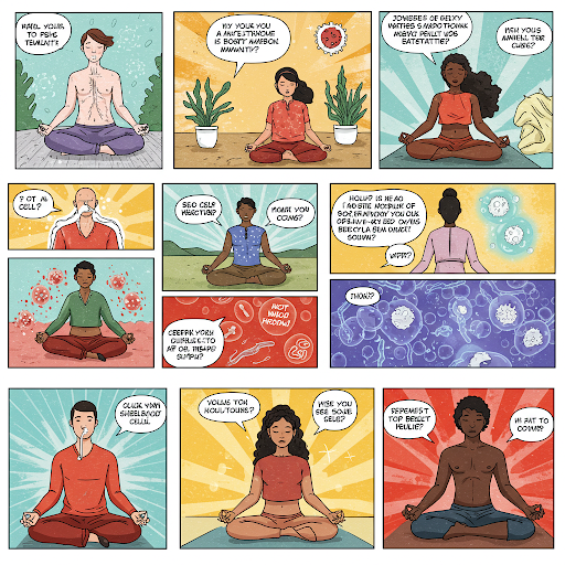 연구에 따르면 명상을 정기적으로 수행하는 사람들은 스트레스 호르몬 수치가 낮고, 백혈구(면역 세포)의 활동이 활발합니다. 이는 명상이 면역력을 강화하는 데 효과적이라는 과학적 근거를 제공합니다.
