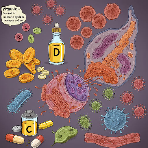 비타민은 우리 몸이 정상적인 면역 기능을 유지하는 데 필수적인 영양소입니다. 비타민이 부족하면 면역 세포의 활동이 저하되고, 감염 위험이 증가하며, 신체 회복력이 떨어집니다.