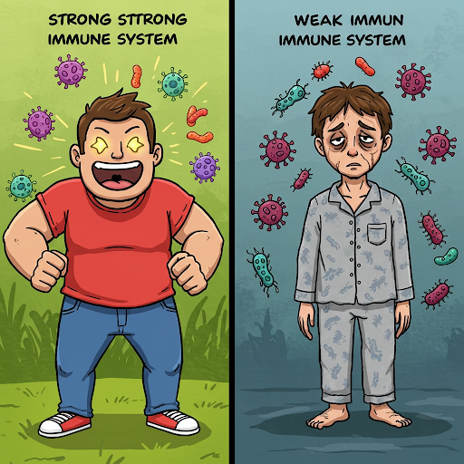 - 스트레스 호르몬의 영향: 만성 스트레스는 코르티솔과 같은 스트레스 호르몬의 지속적인 분비를 촉진합니다. 코르티솔은 항염 작용을 하지만, 장기적으로는 면역 세포의 기능 저하, 항체 생성 감소, 염증 반응 조절 능력 약화 등을 초래하여 면역력을 약화시킵니다.
