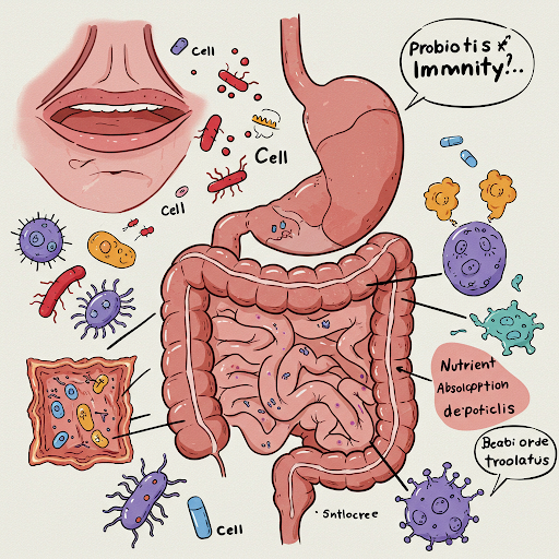 ✅ 건강한 장 환경에서는 **유익균(프로바이오틱스)**이 면역 체계를 강화하고, 유해균을 억제함