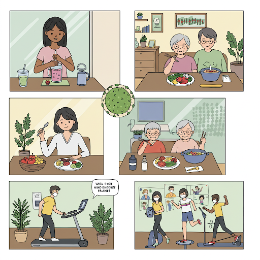 - 사회적 거리두기 시: 외식이 줄어드는 대신 집에서 직접 요리하는 빈도를 늘리고, 가족과 함께 건강한 식사를 즐깁니다.