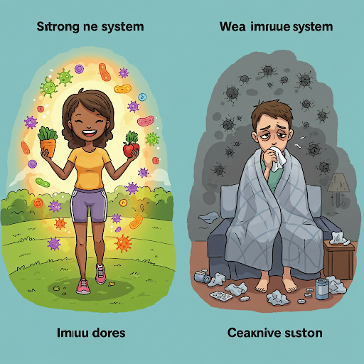 • 면역 세포 기능 저하: 스트레스는 백혈구, 자연살해세포 등 면역 세포의 수와 활동성을 감소시켜 바이러스나 세균에 대한 방어 능력을 약화시킵니다.