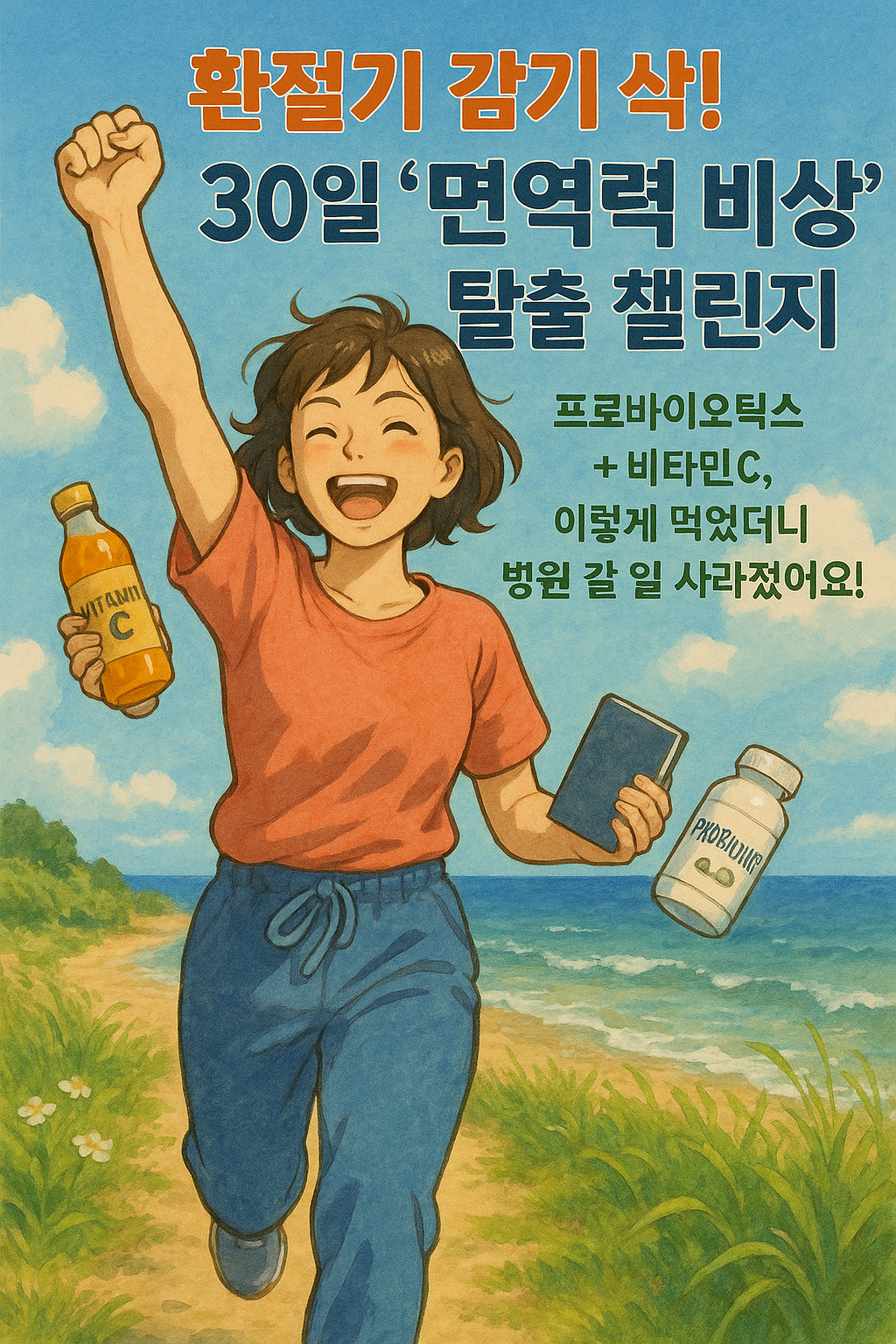 🚀 감기 싹! 30일 '면역력 비상' 탈출 챌린지: 프로바이오틱스 + 비타민C, 이렇게 먹었더니 병원 갈 일 사라졌어요! 🛡️